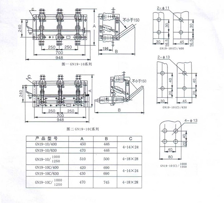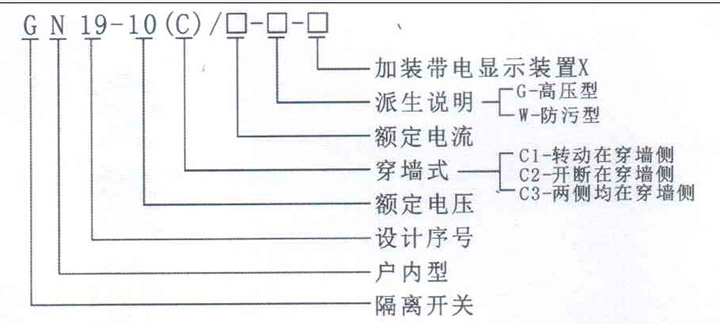 GN19-12系列户内高压隔离开关 一、概述 GN19-12系列户内高压隔离开关(以下简称隔离开关)为额定电压12千伏,三相交流50赫芝的户内装置。 使用环境条件: a.安装场所应无严重影响隔离开关绝缘和导电能力的气体、蒸汽、化学性沉积、盐雾、灰尘、污垢及其他爆炸侵蚀性物质。 b.安装场所应无频繁的剧烈振动。 二、型号及含义